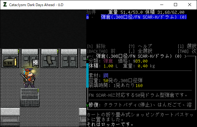 この投稿は「Cataclysm Dark Days Ahead」のプレイ日記です。毎日更新をします。目次はこちら