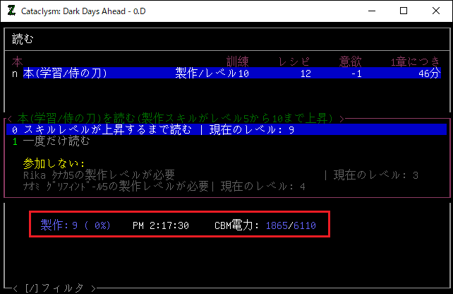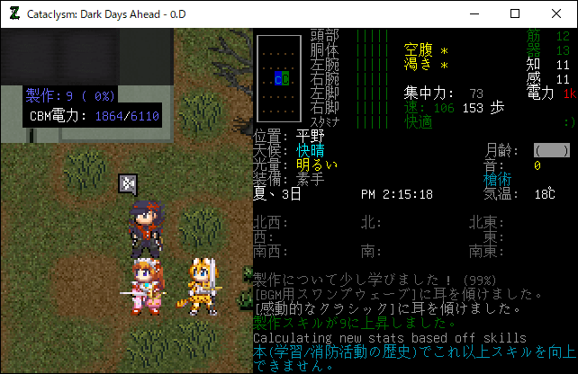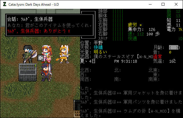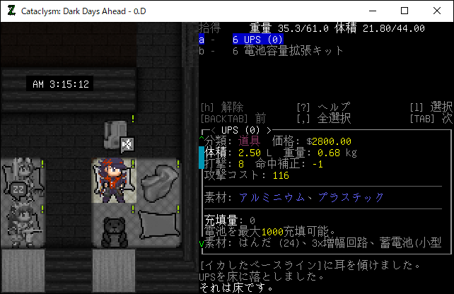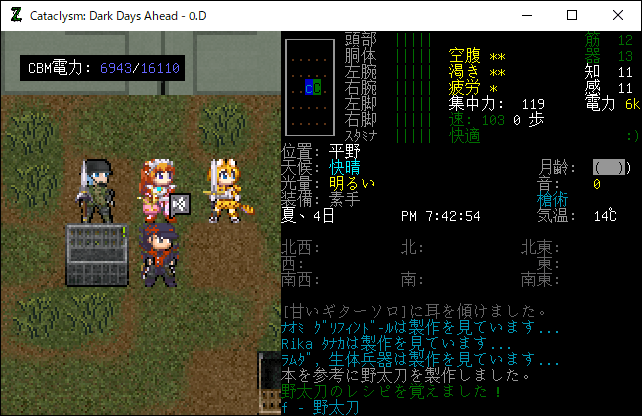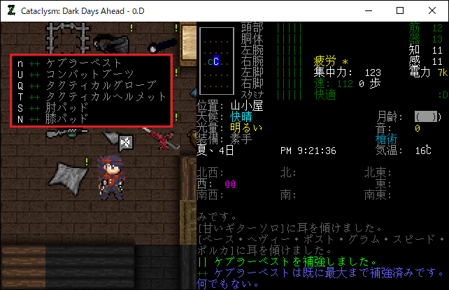 この投稿は「Cataclysm Dark Days Ahead」のプレイ日記です。毎日更新をします。目次はこちら。