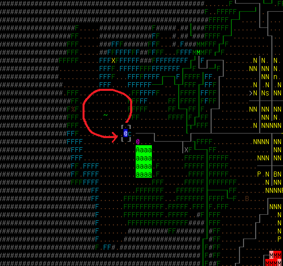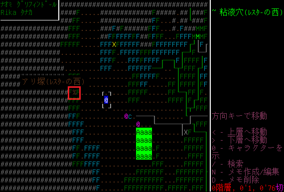 そういえば粘液穴には地下に降りる階段があります(上の画像)。せっかくだし粘液穴の地下を調べるのも面白そうだよなあ。アレキサンダーの時は階段の位置がバグっており地下に降りられなかったのです。