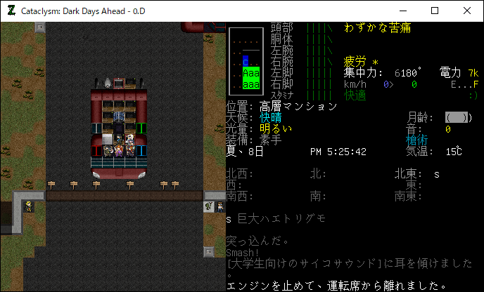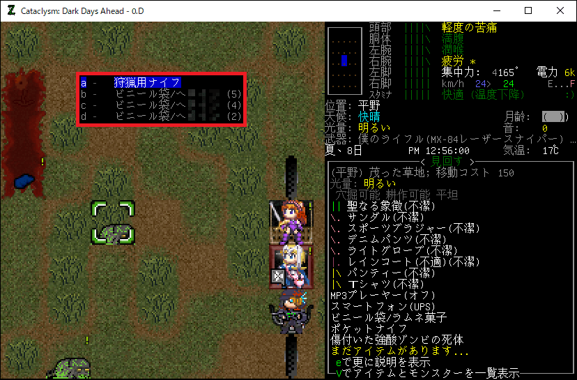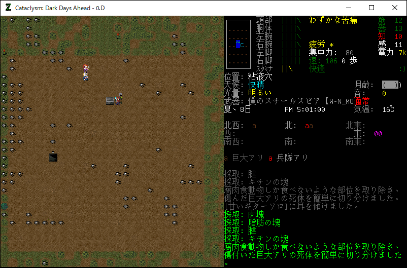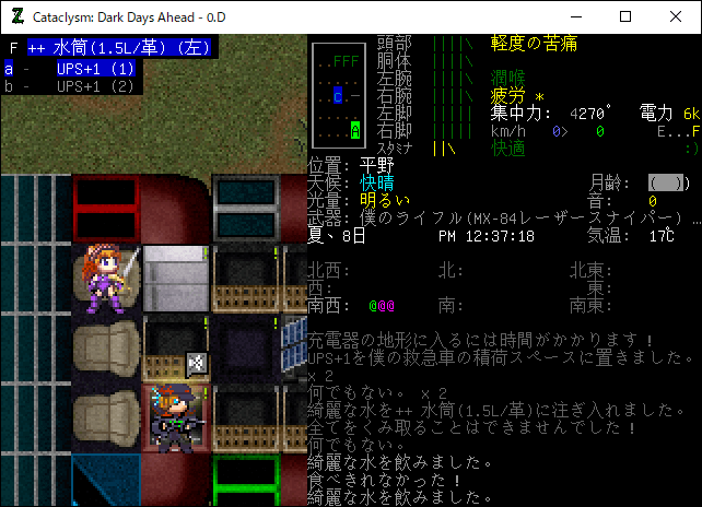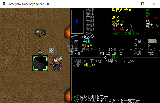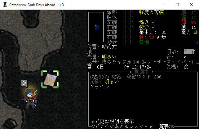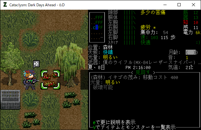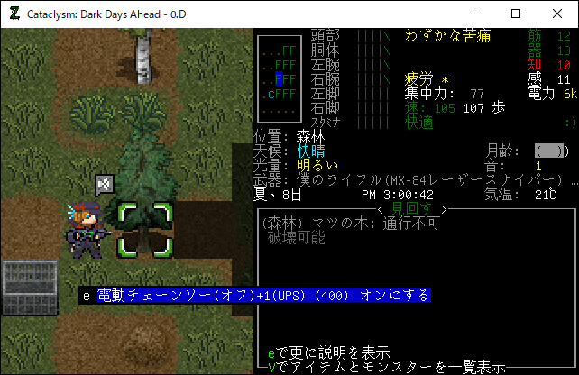 この投稿は「Cataclysm Dark Days Ahead」のプレイ日記です。毎日更新をします。目次はこちら。