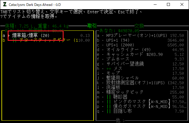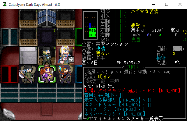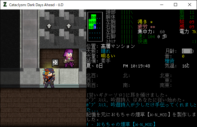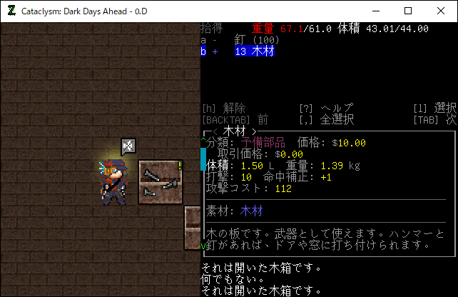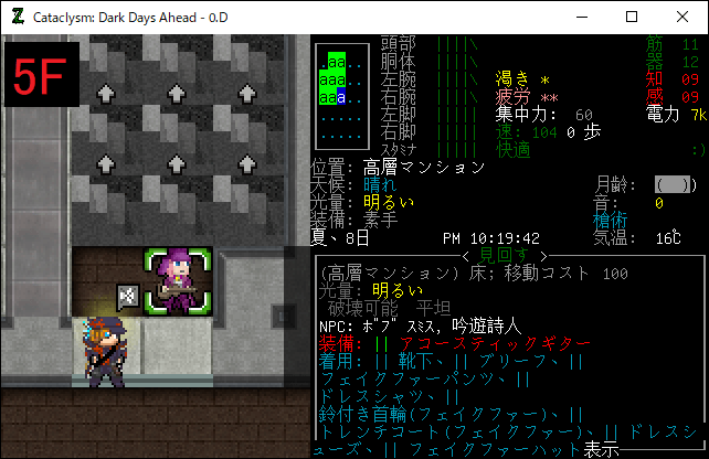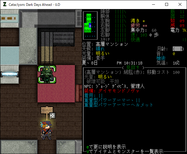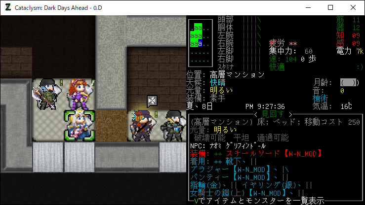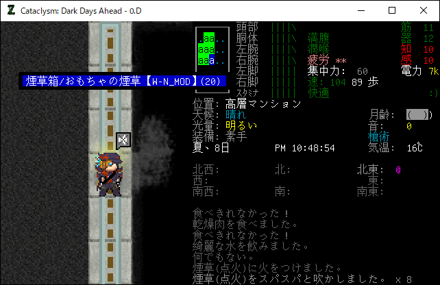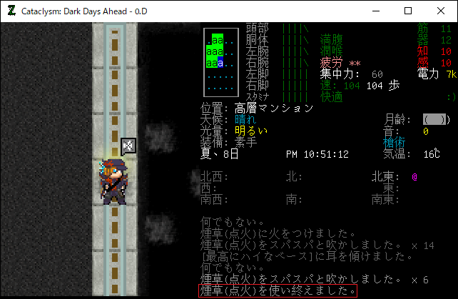 この投稿は「Cataclysm Dark Days Ahead」のプレイ日記です。毎日更新をします。目次はこちら。