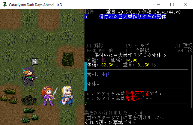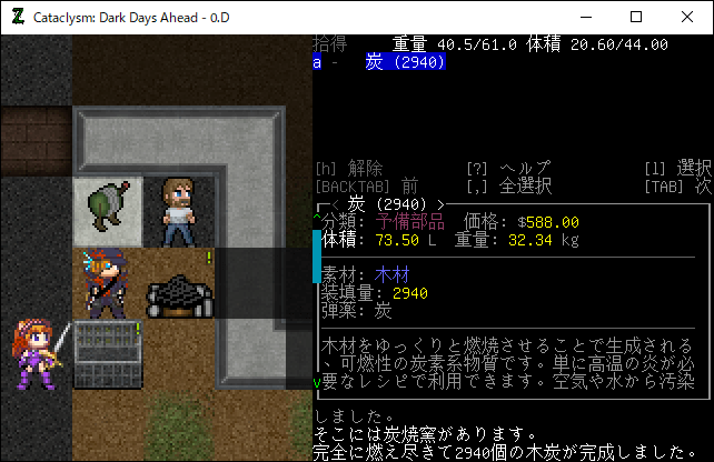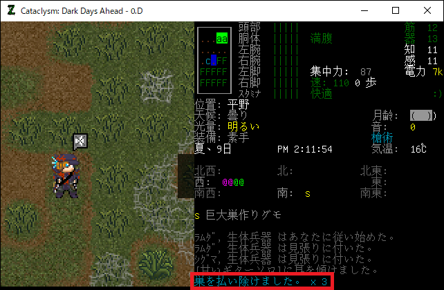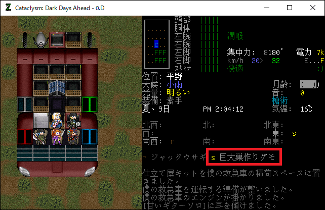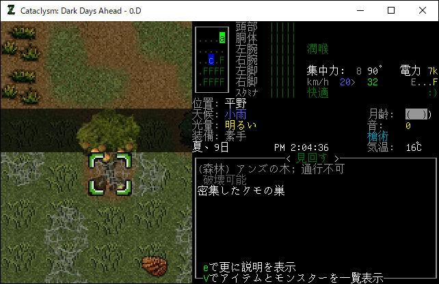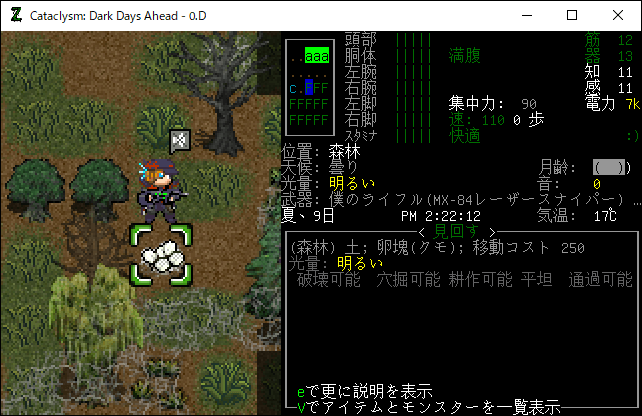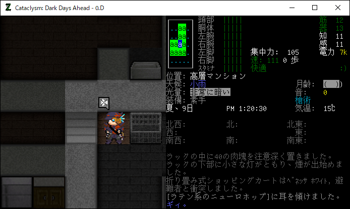 この投稿は「Cataclysm Dark Days Ahead」のプレイ日記です。毎日更新をします。目次はこちら。