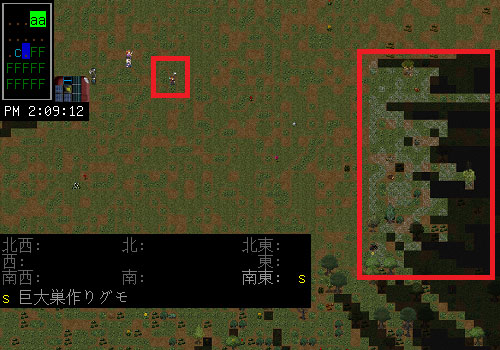 蜘蛛の巣を除去は『s』コマンドでぶん殴ればいいので簡単だ。しかし、NPCは蜘蛛の巣を払ってくれないので非常に面倒くさい。そのうちボスみたいな巨大グモが出現するんじゃないの?