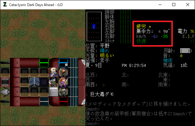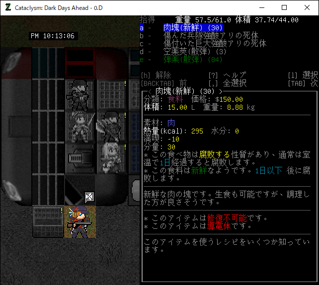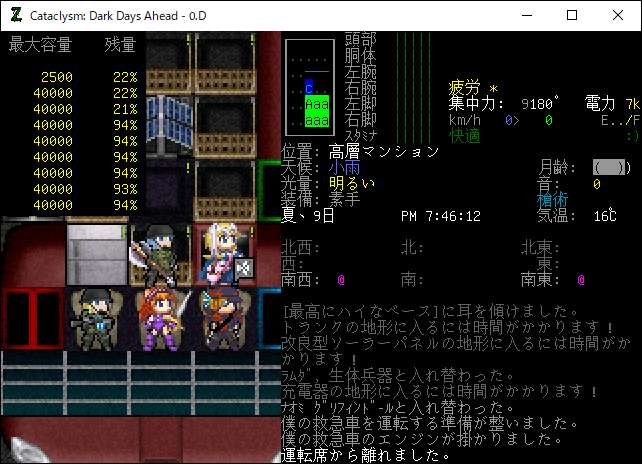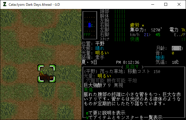 この投稿は「Cataclysm Dark Days Ahead」のプレイ日記です。毎日更新をします。目次はこちら。