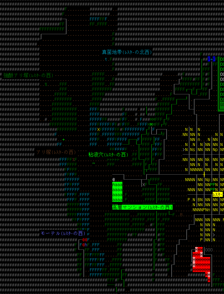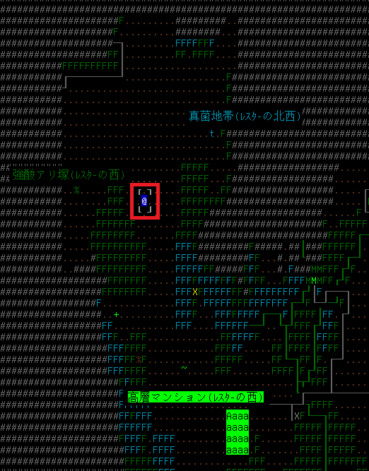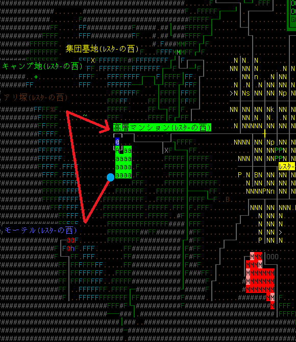 巨大強酸アリから逃げた時の全体マップは上の画像。『真菌地帯』があるんだけど何かの冗談ですよね。高層マンションの北側には強酸アリと真菌モンスターがいたわけ!?