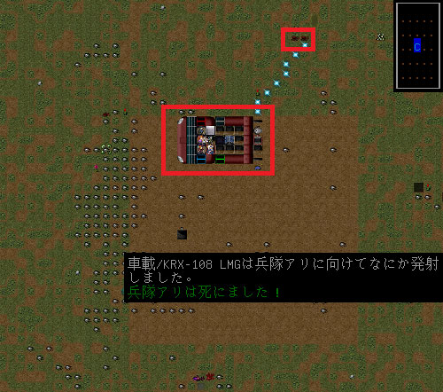 時間が無いから急いで車を走らせよう。レーザータレットで慎重にアリを倒しながら走行します。またアリの集団に囲まれると車両をぶっ壊されてしまうからね。