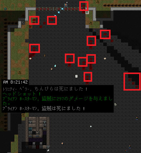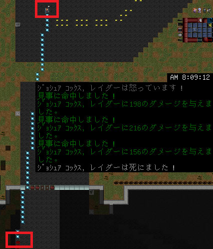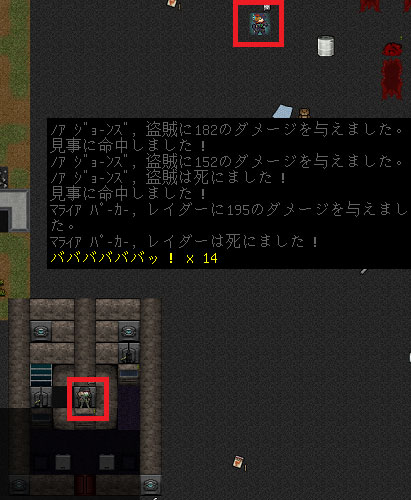 上の画像を見てくれよ。あんなに苦労をさせられた金属シャッターがぶっ壊れていやがる。このまま全てのシャッターを破壊していきます。そのうち盗賊が視界内に入るだろう。