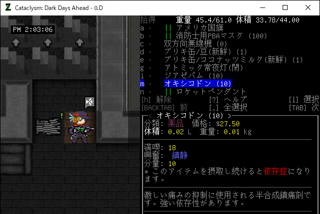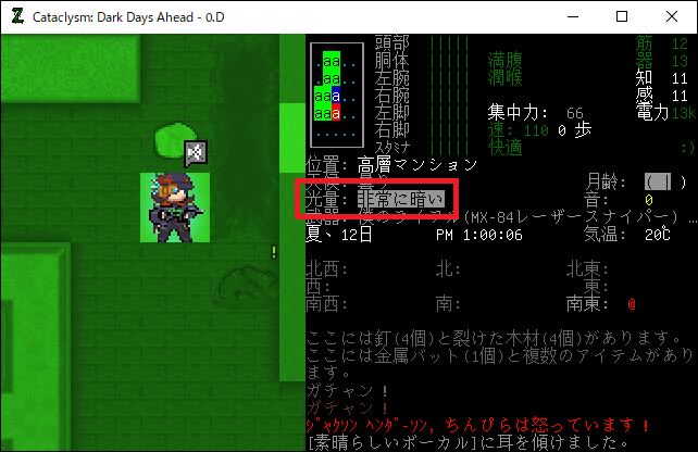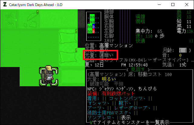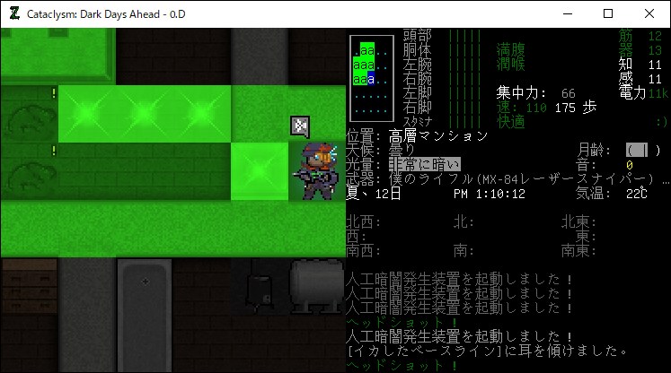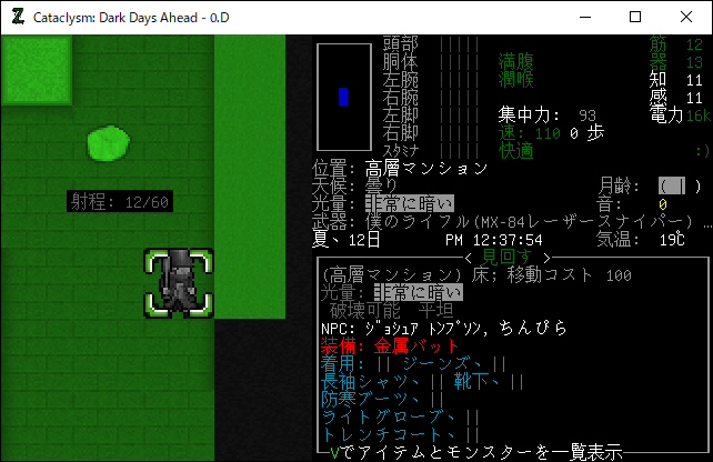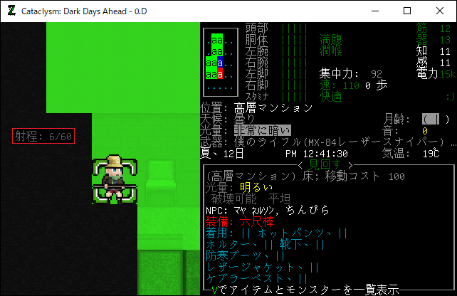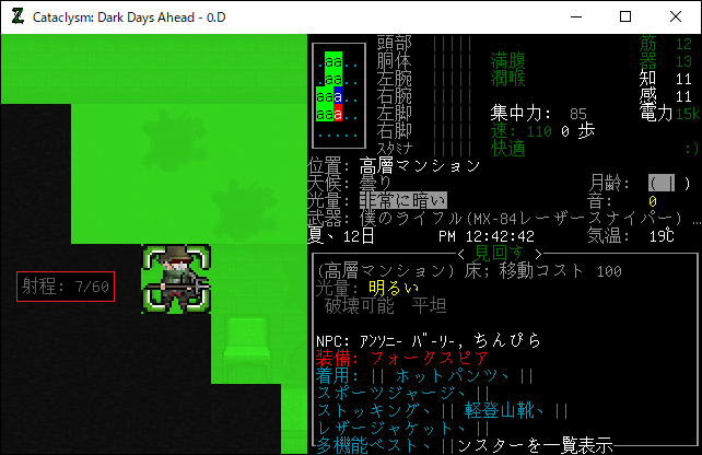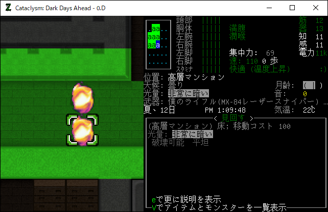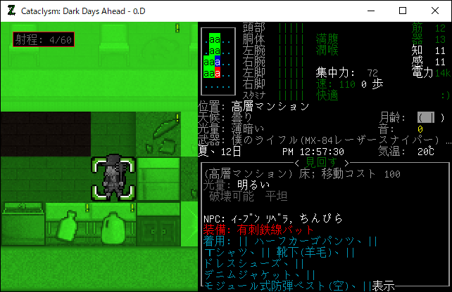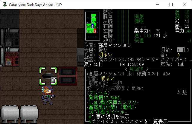 この投稿は「Cataclysm Dark Days Ahead」のプレイ日記です。毎日更新をします。目次はこちら。