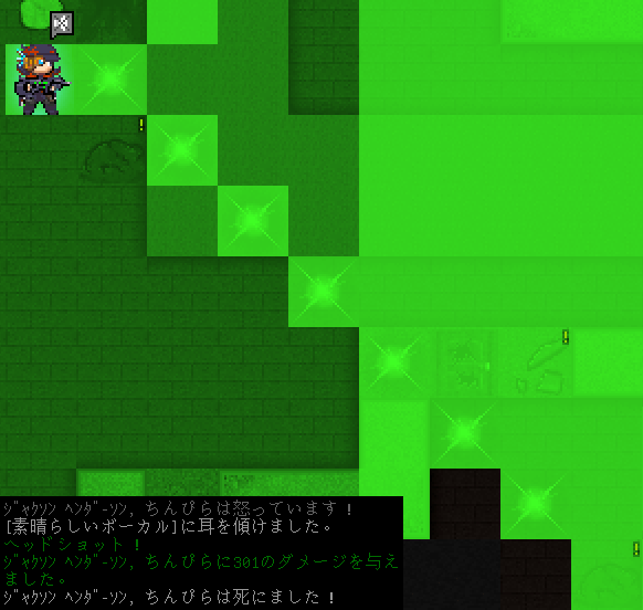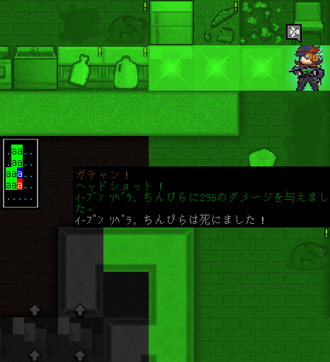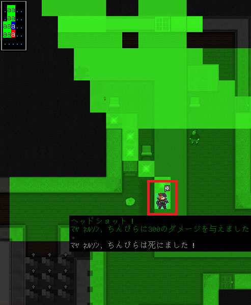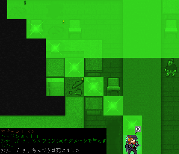 自己満足の解説は以上で終了。暗闇からレーザーをぶっ放して温血動物の討伐に成功しました。これでB棟4階の南にいる盗賊は全滅したはずだ。