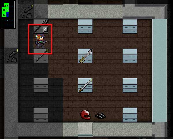 発見したマヤ・ネルソンの武器は六尺棒なんだってさ。使い手のこだわりを感じる玄人向けの近接武器です。敵との距離は6タイルあるので襲撃される心配は無い。