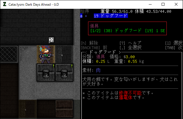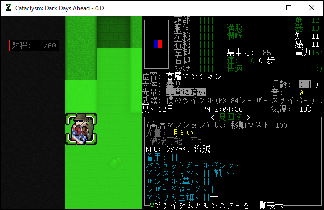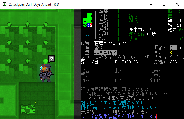 この投稿は「Cataclysm Dark Days Ahead」のプレイ日記です。毎日更新をします。目次はこちら。