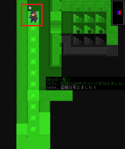 南の部屋にいる盗賊の名前は『シメファミ』だ。武器は装備していないようです。よっぽど素手の攻撃に自信があるんだな。まあ熟練のサバイバーは格闘技を学習して素手で無双するからね。