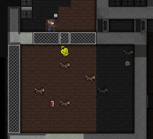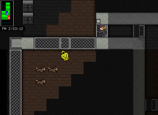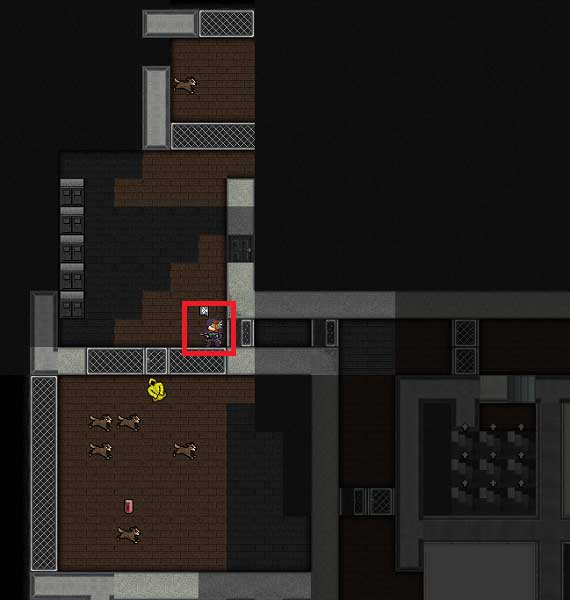 ちょっと待てよ!?金網の中に犬がいる部屋を見つけた!なぜ盗賊のアジトに何匹もの犬がいるわけ?ここが科学研究所なら実験動物だと納得できるのだがな。