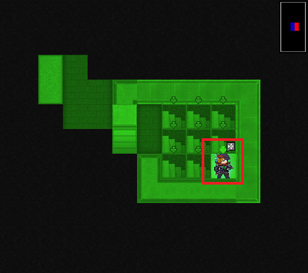 人工暗闇発生装置を稼働したまま5階に上がります。そして『X』コマンドを連続で使いながら徐々に進んでいくのだ(上の画像)。うーむ、ひとまずは視界内に危険は無いようだぞ。