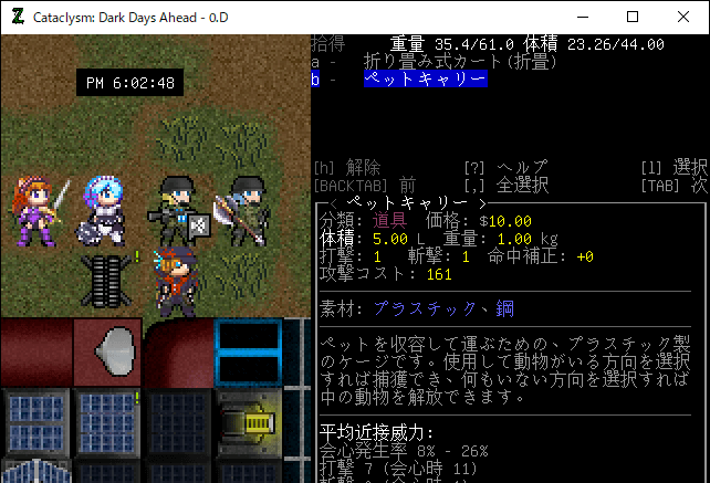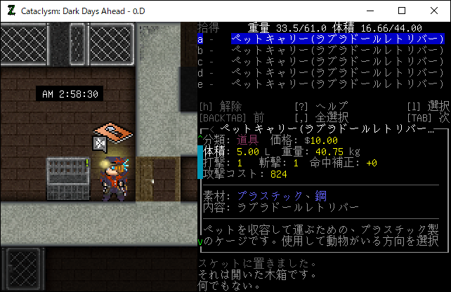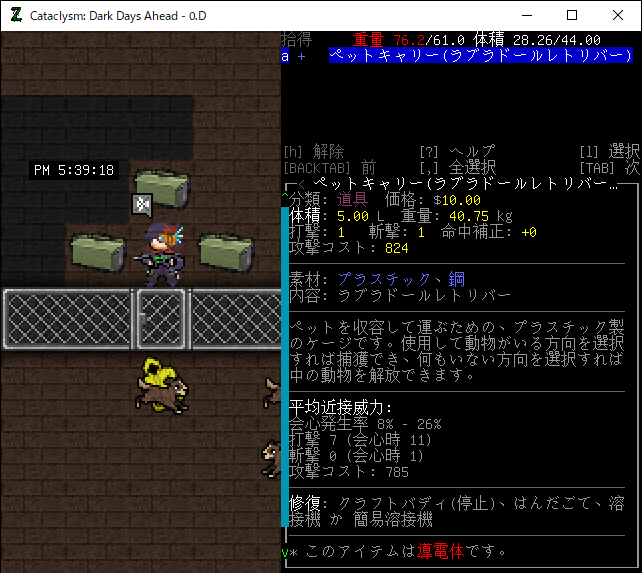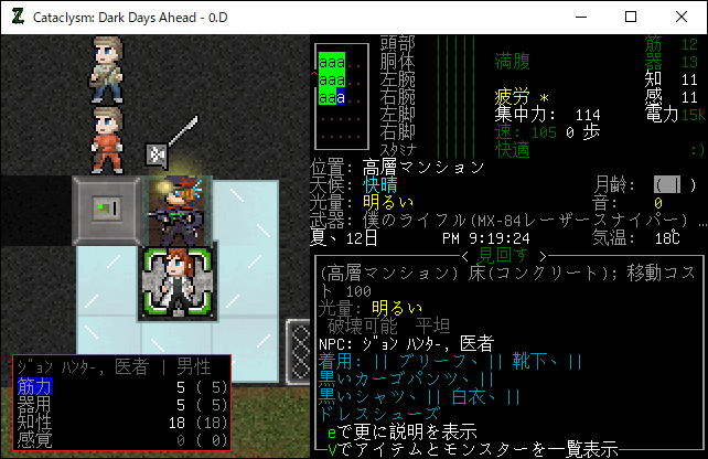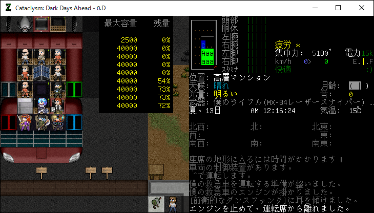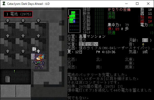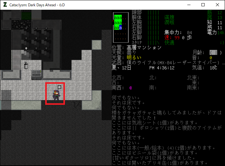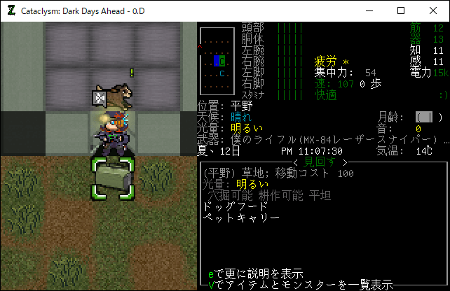 この投稿は「Cataclysm Dark Days Ahead」のプレイ日記です。毎日更新をします。目次はこちら。