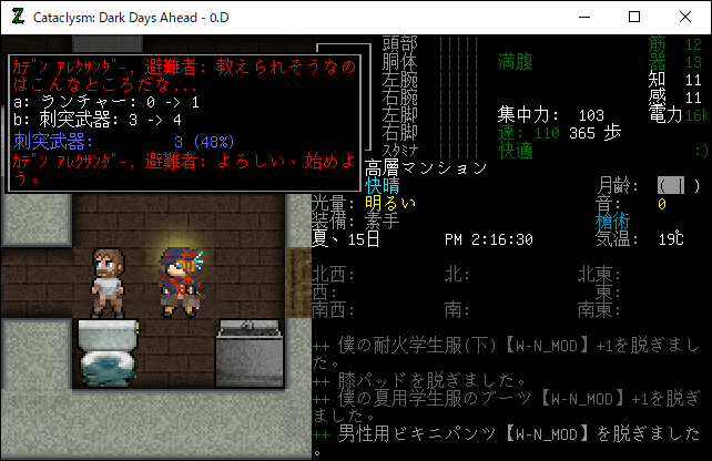 この投稿は「Cataclysm Dark Days Ahead」のプレイ日記です。目次はこちら。