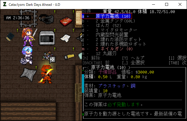 この投稿は「Cataclysm Dark Days Ahead」のプレイ日記です。目次はこちら