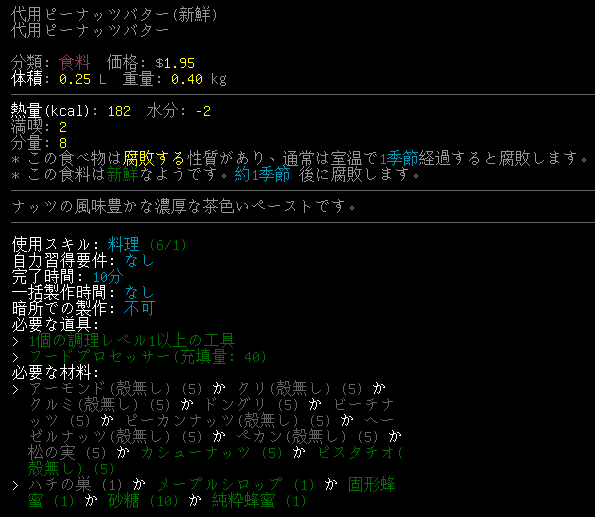 代用ピーナッツバターのレシピは上の画像。ビーナッツバターを用意しても僕はパンを持っていないんですよ。仲間にピーナッツバターだけ食べさせるのは悲しいよなあ。パンは『穀粉』と『酵母』があれば作れます。あとで救急車に穀粉と酵母を積んでおきましょう。