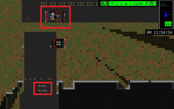 高層マンションから少し北西に進んでレスター西の粘液穴に到着しました。何匹かアリの姿が見えるけど、この場所に救急車を駐車しましょう。後退してアリの視界外に逃げるのは面倒くさいからな。