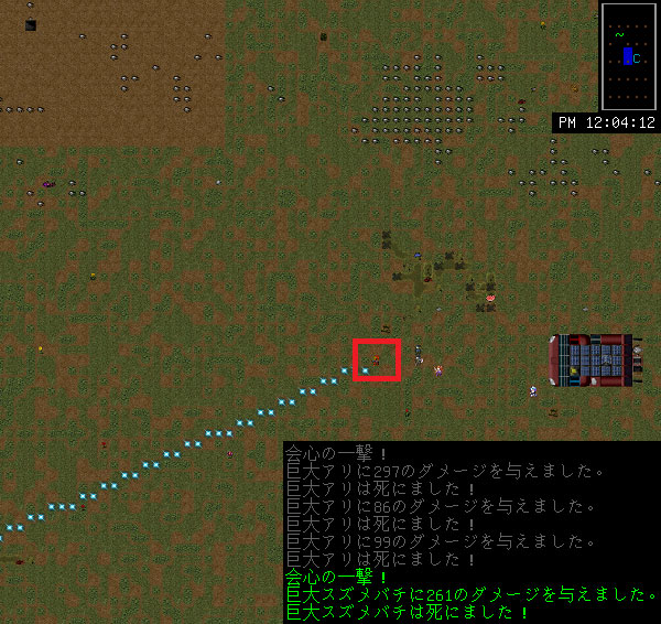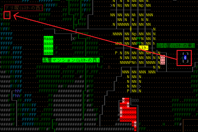 攻略するアリ塚の位置は高層マンションの北西になります。こんなに近い場所にアリの怪物がいたら安心して眠れないよ。まあしかし、アリは食料になるので皆殺しはやめようかと思案中だ。