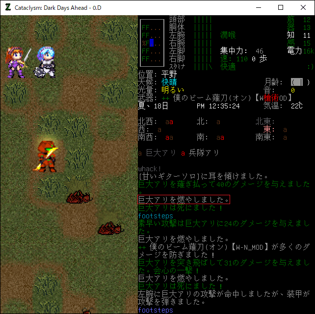 ビーム薙刀はマジで強かった。まるでバターでも斬っているのかのようにサックサクとアリが朽ち果てていったよ。だけどダメージ量は20や30だったりして低いんだよなあ。