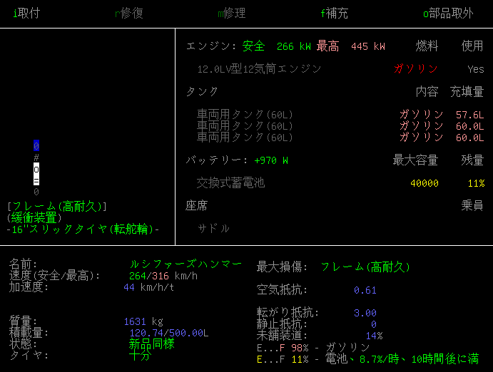 この時のルシファーズハンマーは上の画像。理由はわからないけどバッテリーが減りまくっている。充電器にUPSを入れるのはやめておこうか。エンジンの起動が不可能になって帰れなくなる(笑)。