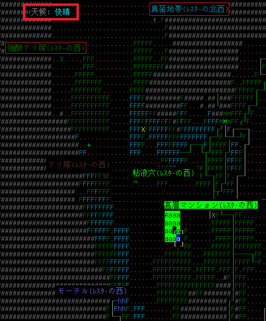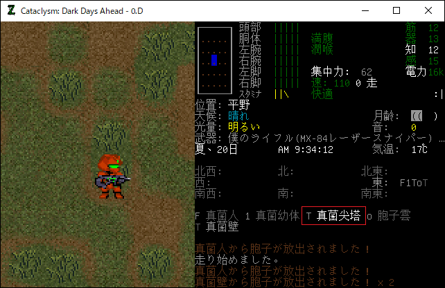 Cataclysmのプレイ日記を始めます。今日も高層マンションのために戦闘をするぞ。強酸アリ塚か真菌地帯のどちらかを制圧したい。