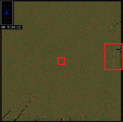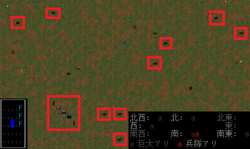 高層マンションの周囲にいたアリは数が減ってしまった。だけどアリ塚の北側には、まだ巨大アリが残っているみたいね(上の画像)。今年の冬を越せるくらいの食料は調達できるようだ。アリが残っているうちに大規模な農場を作れば自給自足で高層マンションの住人を養えるかもしれない。