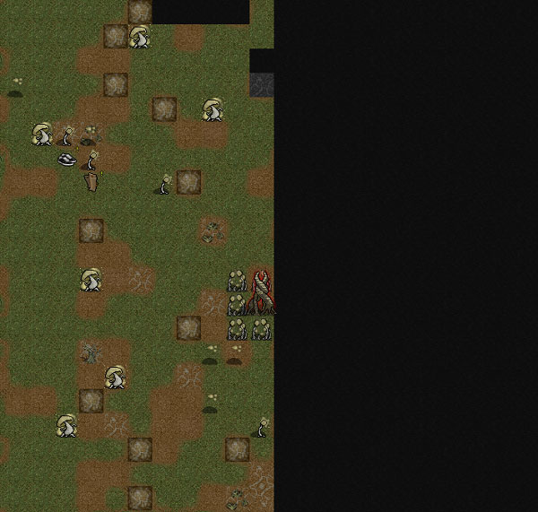 真菌尖塔を発見した時の戦場は上の画像。画面の中央にいるのが俺だ。視界の東端ぎりぎりでゴチャゴチャと地面を汚しているのが真菌人達だな。