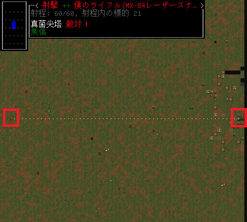 真菌尖塔との間合いはレーザースナイパーの最大射程『60』ピッタリだ。都合の良すぎる位置にいるけどセーブロードを繰り返したわけじゃない。この時の俺は天候の事で頭が一杯だった。変な小細工をするほど心に余裕はなかった。