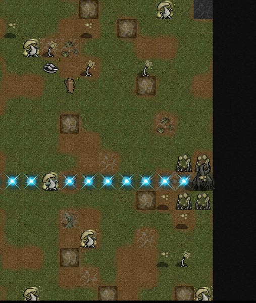射程60の狙撃により真菌壁ごと真菌尖塔を撃破しました!やっぱりレーザースナイパーは頼りになるぜ!この後は敵に近づいて焼き払うわけだが、ちょっと戦況を確認してみましょう。