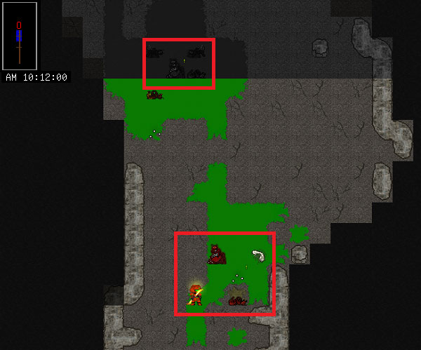 現在の探索結果は上の画像。前回は強酸アリ塚に侵入して少し北に進んだところで中断しました。運良く女王アリを発見できたので討伐しましょう。