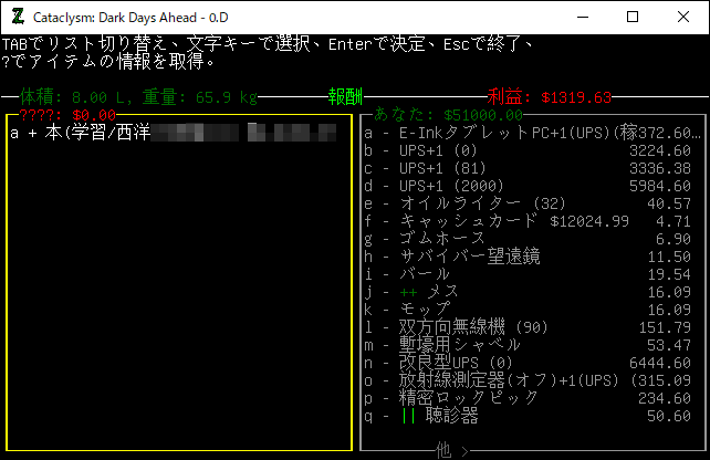 この投稿は「Cataclysm Dark Days Ahead」のプレイ日記です。目次はこちら。