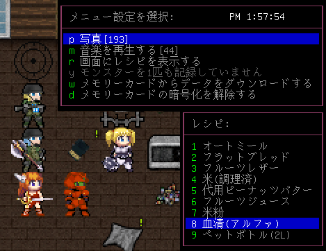4枚のSDカードを解析した結果は上の画像。旧人類の記録がドンドン貯まっていくのは嬉しいなあ。それは結構なのだけど、血清(アルファ)のレシピを選択してもクラフト画面に表示されません!セーブロードをやり過ぎてゲームのデータがぶっ壊れたのかと絶望したよ。クラフト画面に表示されない理由は料理スキルが足りないからだった笑(血清アルファのクラフトには料理スキルが10必要)。