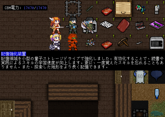電子工学スキルを上げるのは中止にしようかと思いきや、便利なCBMを発見してしまう。『CBM:記憶強化装置』には読書の学習速度を向上させる効果があるらしい。どれほど早くなるのかCBMの実験も兼ねて利用してみたいね。現在のCBM電力は満タンの17470だけど稼働させながら読書をしたら0になるかもと心配しています。