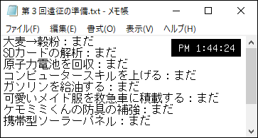 遠征の前に済ませておいたいノルマは上の画像。現在の時刻はお昼だし大部分のノルマを消化できるだろう。コンピュータースキルを鍛える余裕は無いかもしれません。