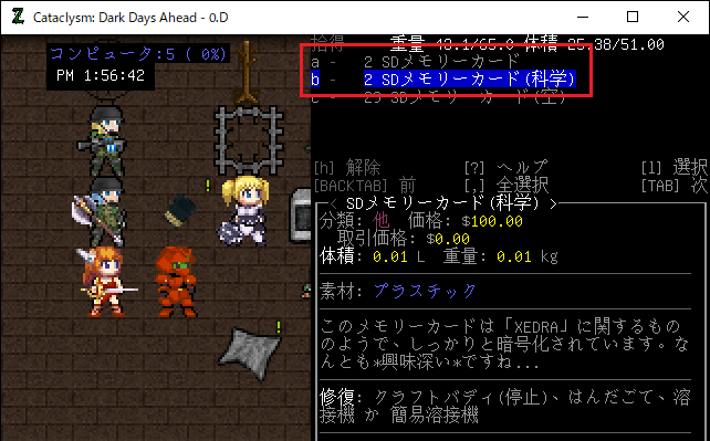 この投稿は「Cataclysm Dark Days Ahead」のプレイ日記です。目次はこちら。