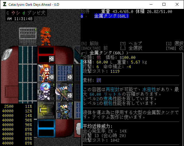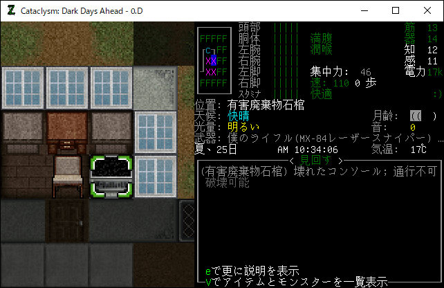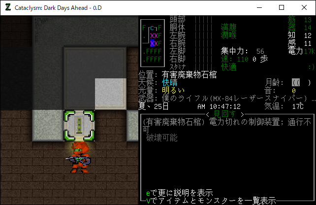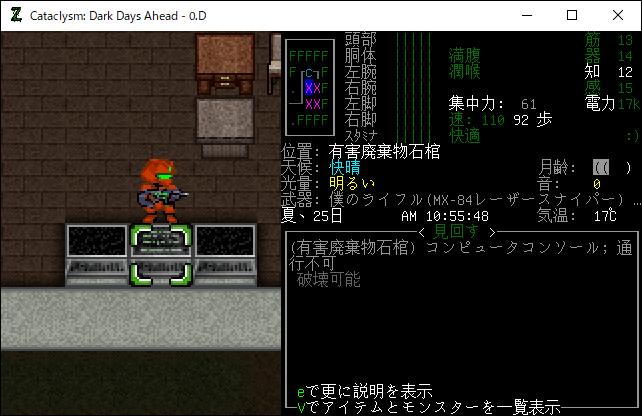 この投稿は「Cataclysm Dark Days Ahead」のプレイ日記です。目次はこちら。