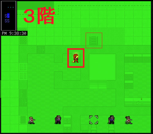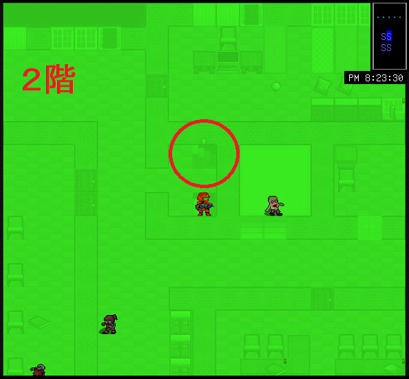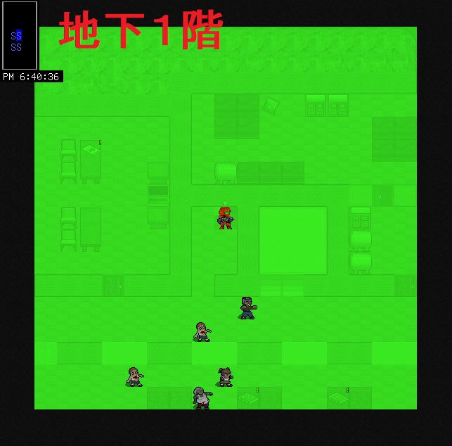 地下1階の様子は上の画像。階段の周囲には弱いゾンビしかいません。そんなに敵の数は多くなさそうだし1階よりも簡単に制圧できるかもな。