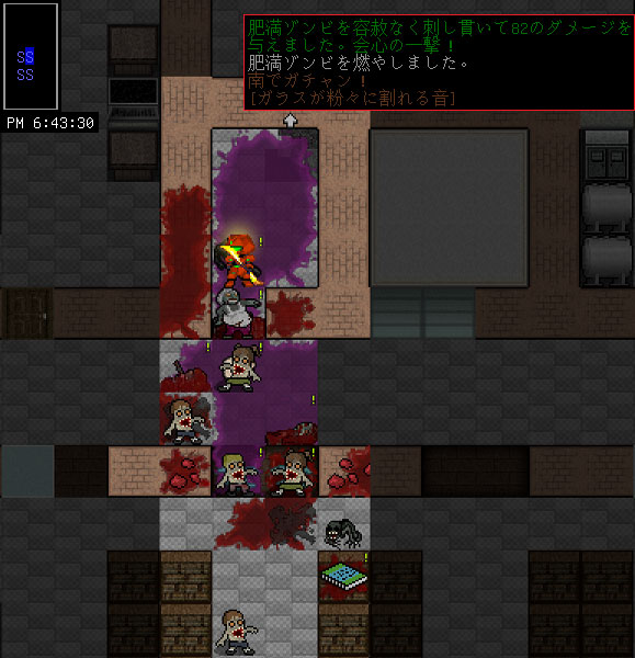 ビーム薙刀で撃破したゾンビの亡骸は放っておくと復活します。『s』コマンドで叩けば復活を阻止することができる。だが1体叩くのに俺の環境だと30秒も掛かるんだよ。ゾンビの亡骸は数十体あるためぶっ叩くだけで数十分も経過しちゃう。