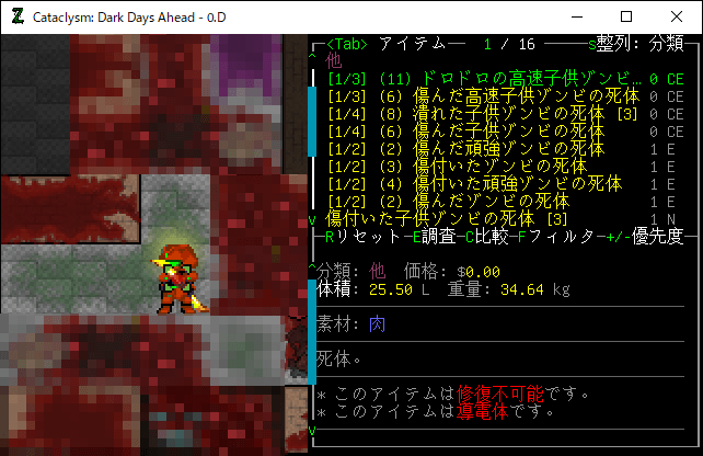 この投稿は「Cataclysm Dark Days Ahead」のプレイ日記です。目次はこちら。