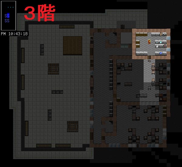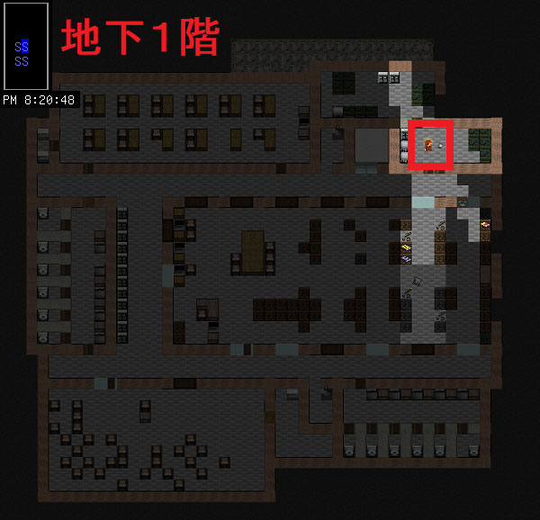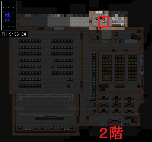 雑魚ゾンビばかりで特筆するような場面は無かったので戦闘中の画像はカットします。1時間ほど敵と戦って2階の制圧が完了しました。2階は講堂などのデカい教室があるフロアだ。あまり戦利品は期待できないと思っている。