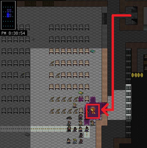 2階を覗いた時の様子は上の画像。信じられないことに3階に上がる階段が設置されている!急いで攻略しないと今日中に学校を制圧するのは無理かも(泣)。まあ焦って行動したら死ぬかもしれないので慎重に立ち回ろう。