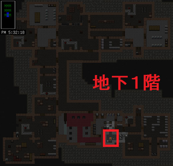 1時間30分ほど歩き回って地下1階の探索が終わりました。迷路みたいに廊下がゴチャゴチャしているから壁をぶっ壊しながら進んだよ。地下室は1階よりもアイテムの質が低いから序盤に来ても嬉しくないかもね。
