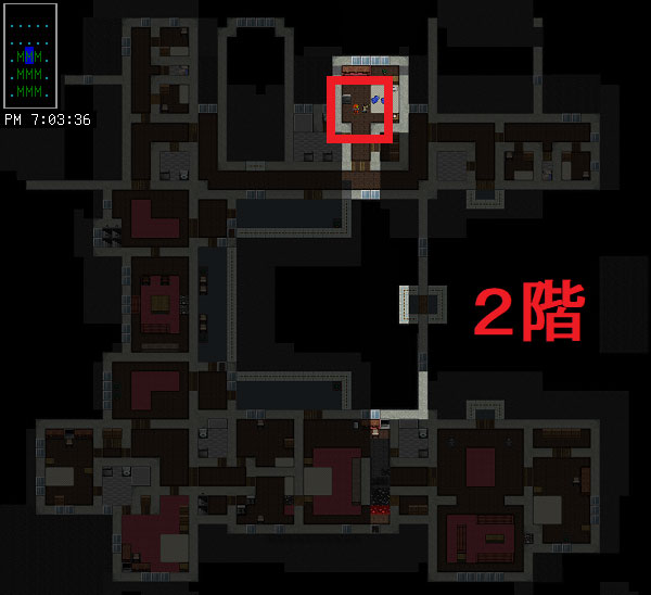 地下1階の戦利品を救急車に積載したので2階に上がります。3階があったら面倒くさいから2階で終わってほしい。今回のプレイはスクリーンショットの画像が50枚くらいになりそうで非常につらい。