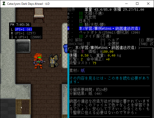 この投稿は「Cataclysm Dark Days Ahead」のプレイ日記です。目次はこちら。