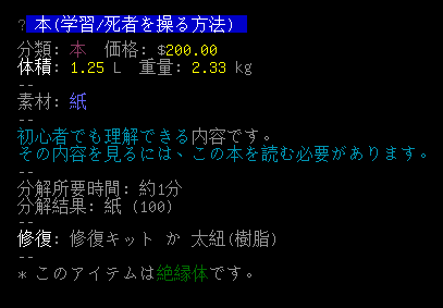 ゲームが不安定になっちまったけど、仕方がないと腹をくくろうぜ。死霊魔術のMODのおかげでゲームに登場するアイテムが増えました。新たなアイテムのうちの1つが上の『本(学習/死者を操る方法)』になる。この学習本は必ず手に入れたいですな。