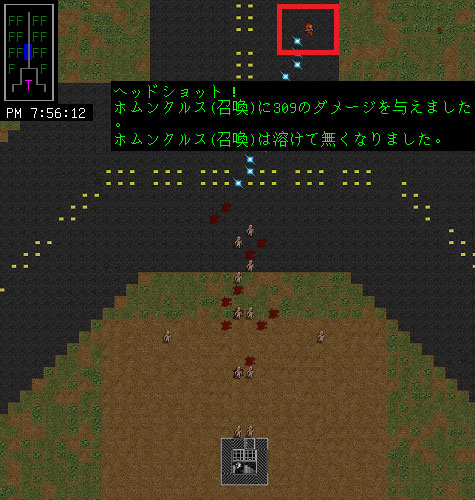 画像が縮小されているから分かりにくいけど金網の北側に2体のホムンクルスが現れました。奇妙な神殿の地下室から地上にやってきたのかな。もうちょっと画像を拡大してみましょう。