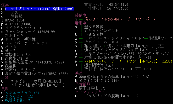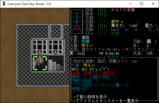この投稿は「Cataclysm Dark Days Ahead」のプレイ日記です。目次はこちら。
