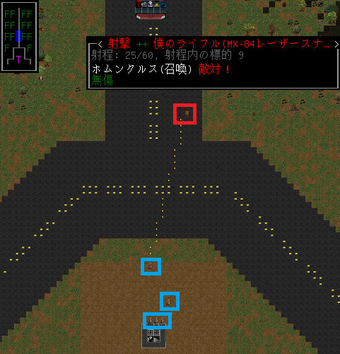 ホムンクルスを狙撃したところ1擊で倒すことができました。しかしながら、また金網の北側にホムンクルスが出現した(泣)。どうすればホムンクルスの増殖を止めることができるんだよ。もしかして金網の中にいるNPCは召喚師なの?奴を狙撃したいのだが今の状態だと射線が通らない。